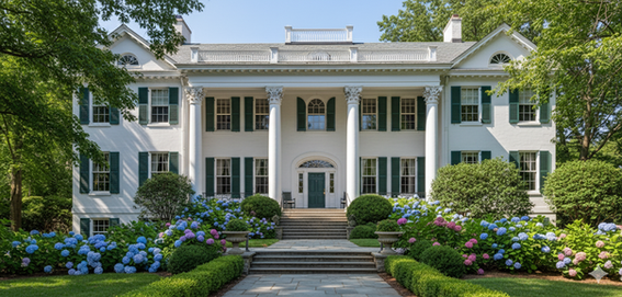 The old mansion was razed in 1985 and the new home was built on the footprint. While the new home retained many design cues from the orignal mansion, the only thing that survived were the four front columns which came from Italy.